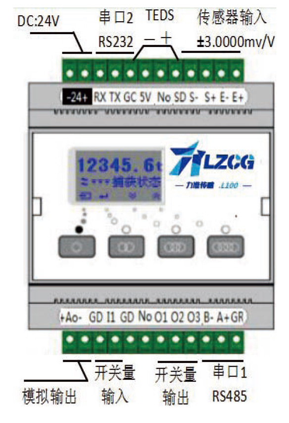 主要功能: 1.1 簡單稱重測力、比較輸出功能。 1.2 峰值捕獲、峰值比較輸出。 1.3 多串口通信,可選modbus-RTU通訊、主動上傳以及其他定制協議。 1.4 高性能OLED或LCD漢字顯示,溫度適應范圍寬、顯示速度快。 1.5 具有上電清零、通訊清零、手動清零、自動零位跟蹤等功能。 1.6 具有TEDS接口,與TEDS傳感器配套可以實現自動校準。1.7 可以根據客戶要求增加各種分析檢測或者跟蹤控制功能。